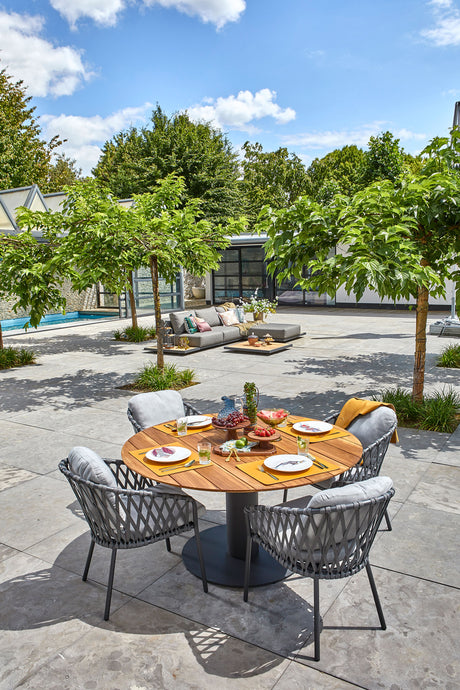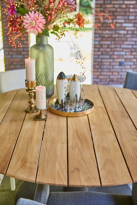 SUNS Grado tafel Ø150 x 75,5 cm - Teak blad / Matt royal grey frame