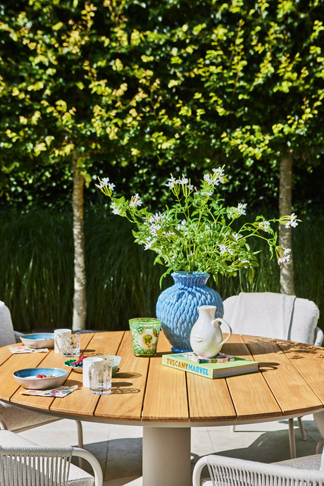 SUNS Grado tafel Ø170 x 75,5 cm - Teak blad / Matt royal grey frame