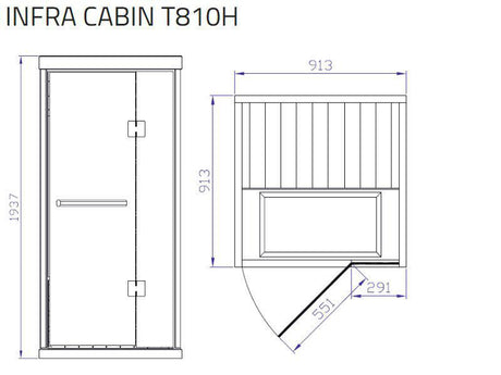 Tylö infraroodcabine T810H 913 x 913 x 1938 mm - zwart