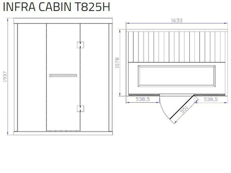 Tylö infraroodcabine T825H 1633 x 1078 x 1938 mm - zwart