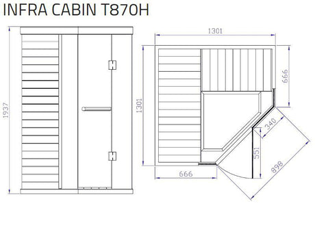 Tylö infraroodcabine T870H 1301 x 1301 x 1938 mm - zwart