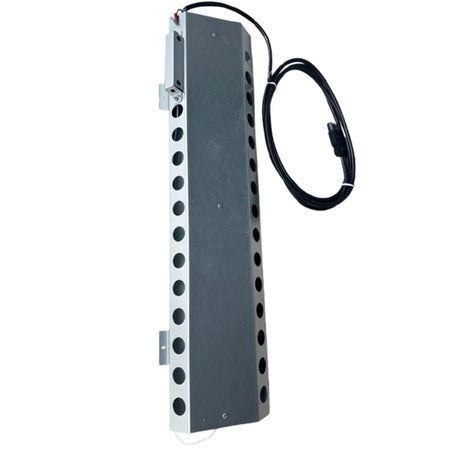 De straler wordt aan de wand of in de rugleuning van de cabine gemonteerd en aangesloten op een geschikt besturingssysteem.