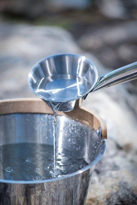 Een sauna lepel gebruik je om water uit de emmer op de hete saunastenen te gieten. Zo bepaal je precies hoeveel stoom je wilt creëren en blijft de hitte aangenaam verdeeld in de cabine.