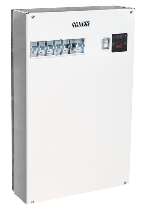 Een besturing regelt temperatuur, tijdinstellingen en soms extra functies, zodat je de sauna eenvoudig kunt bedienen.