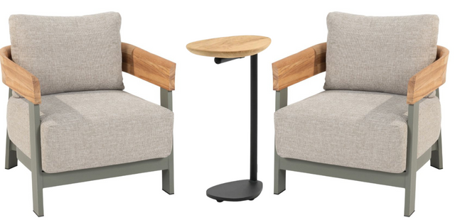 De Varenna loungestoelen combineren een gepoedercoat aluminium frame met teakhouten rugleuningen, wat zorgt voor een moderne én natuurlijke uitstraling. Dankzij deze materiaalcombinatie zijn de stoelen licht, sterk en volledig weerbestendig. Het duurzame teak vergrijst met de tijd op een stijlvolle manier en geeft de stoelen extra karakter. Met hun royale zitcomfort zijn de loungestoelen ideaal voor lange avonden buiten, waarbij je volledig tot rust komt.