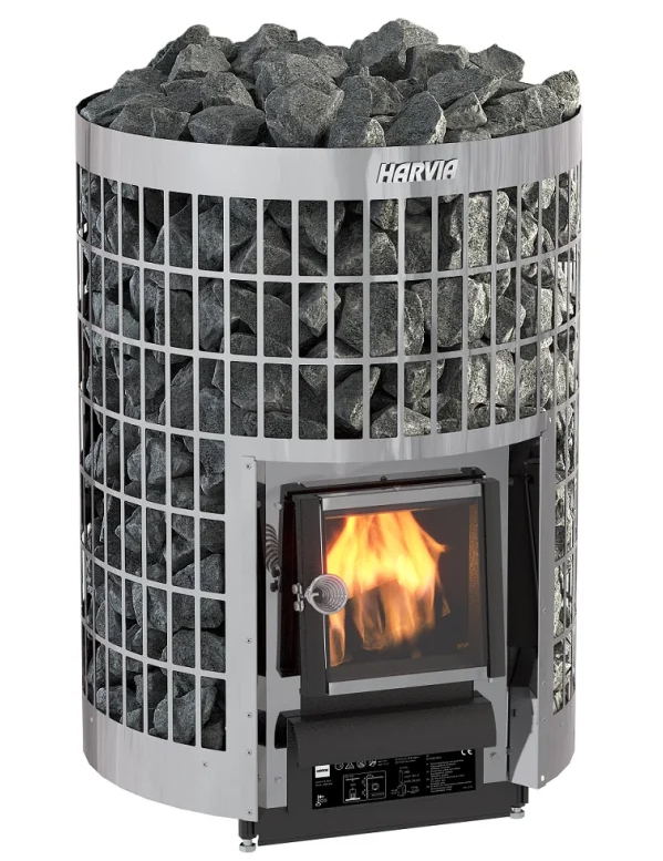 Het verticale ontwerp is zowel ruimtebesparend als functioneel. Dankzij de open structuur en optimale luchtcirculatie verbrandt het hout gelijkmatig en efficiënt, waardoor je minder vaak hoeft bij te vullen. De royale hoeveelheid saunastenen zorgt voor langdurige warmte, zelfs als het vuur tijdelijk dooft. Zo blijft de temperatuur stabiel en comfortabel.