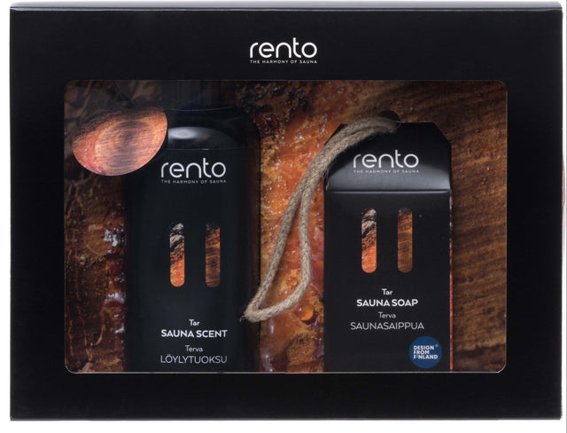 Ontdek de authentieke Finse saunabeleving met de Rento cadeauset Teer saunageur en sauna zeep. De karakteristieke, houtige geur van teer brengt een warme en rustgevende sfeer in de sauna en helpt lichaam en geest volledig te ontspannen. De natuurlijke zeep verzorgt en reinigt de huid op milde wijze, terwijl de saunageur zorgt voor een unieke geurervaring tijdens het opgieten.