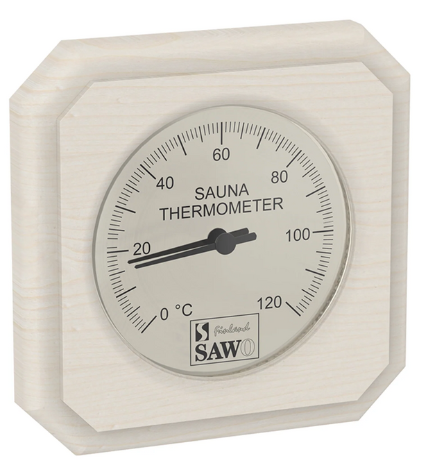 De sauna thermometer met gesneden hoek helpt je eenvoudig de temperatuur in je sauna te controleren. Het stijlvolle ontwerp en de natuurlijke afwerking maken deze thermometer een praktische en decoratieve toevoeging aan iedere sauna ruimte.