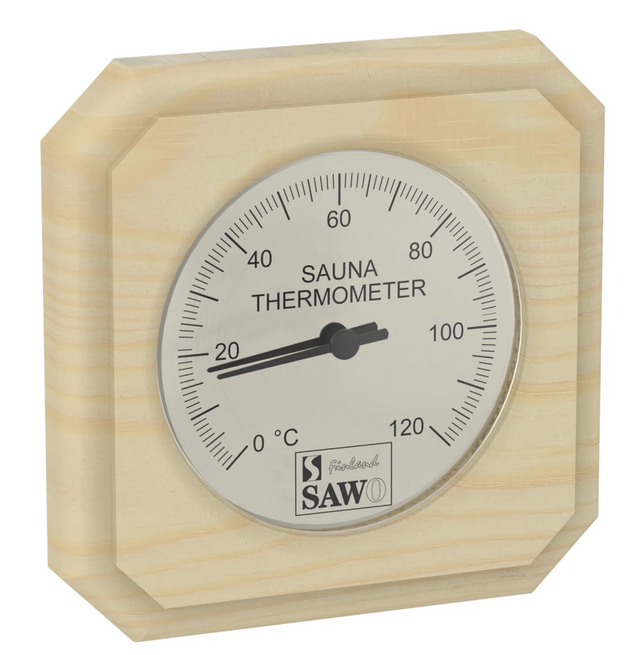 De sauna thermometer met gesneden hoek helpt je eenvoudig de temperatuur in je sauna te controleren. Het stijlvolle ontwerp en de natuurlijke afwerking maken deze thermometer een praktische en decoratieve toevoeging aan iedere sauna ruimte.