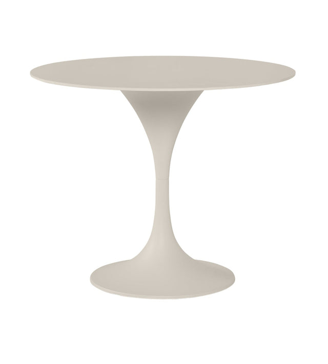 Het ronde blad is gemaakt van sintered stone, een innovatief materiaal dat de elegante uitstraling van natuursteen combineert met uitstekende gebruikseigenschappen. Het blad is kras- en hittebestendig en eenvoudig schoon te maken. Of je nu een kop koffie drinkt of een diner serveert, het oppervlak blijft altijd mooi en praktisch.
