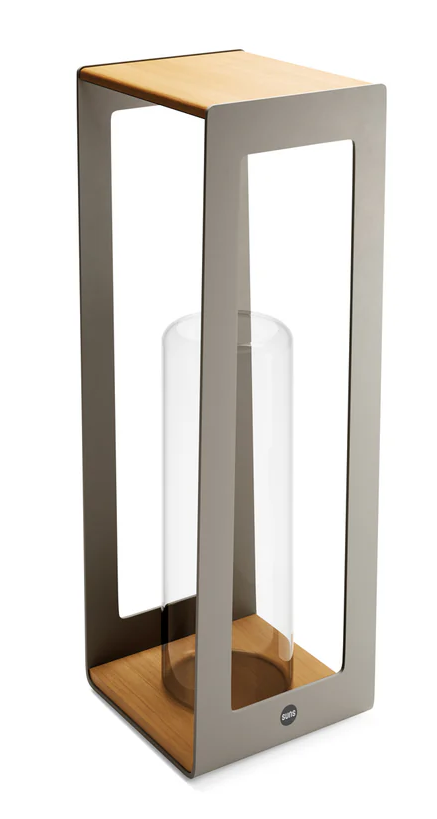 De SUNS Zara L tuinlantaarn voegt stijl en warmte toe aan je buitenruimte. Met een frame van teakhout en een afwerking in slate brown heeft deze lantaarn een robuuste en verfijnde uitstraling die perfect past bij een natuurlijke of industriële tuininrichting.