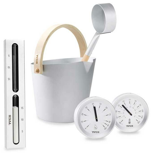 Met de Tylö Giftset Brilliant Silver combineer je functionaliteit met een stijlvol design, waardoor je sauna een verfijnde en moderne uitstraling krijgt. Deze set is perfect voor zowel nieuwe saunaliefhebbers als ervaren gebruikers die hun sauna-accessoires willen upgraden.